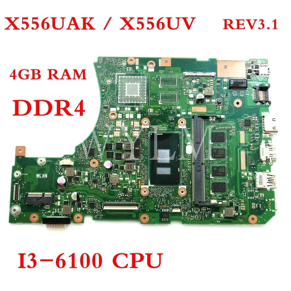 Most effective X556UAK/X556UV I3-6100CPU With 4GB RAM mainboard REV3.1 For ASUS X556U X556UQ X556UR X556UV laptop